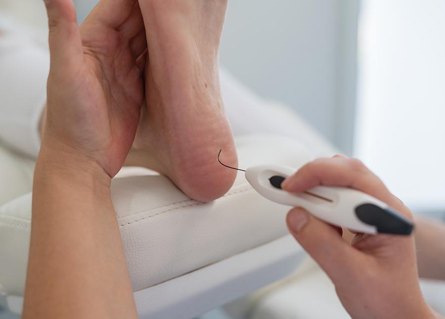 We examine every part of your bare feet—including toes, soles, heels, and between the toes—to look for corns, calluses, skin cracks, swelling, or changes in colour or shape.